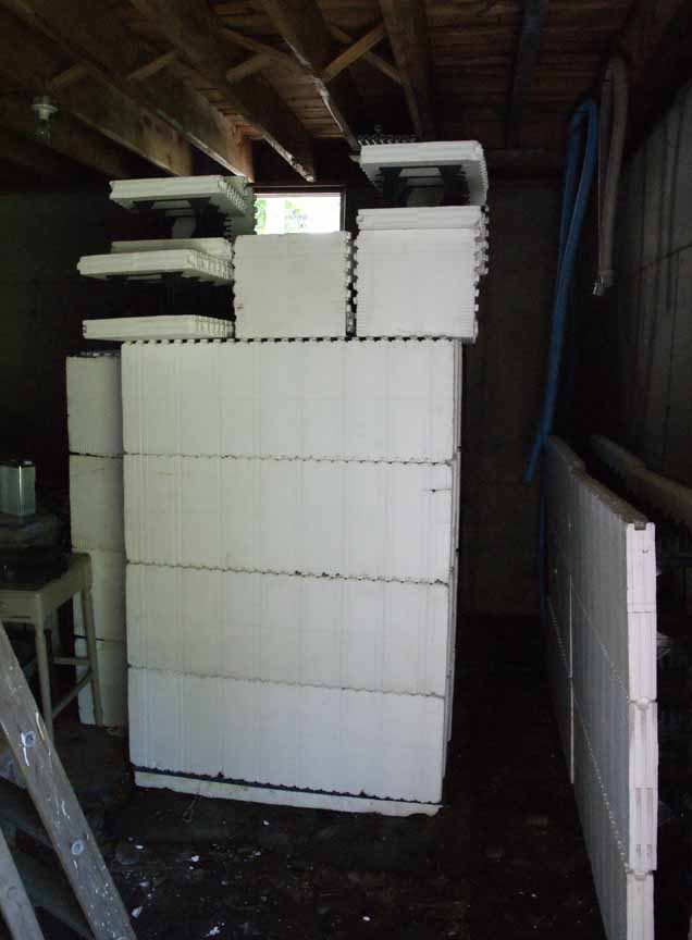 I also got a great deal on ICF’s (insulated concrete forms) off of Craig’s List. ICF’s are big insulated panels that you can pour your concrete stem wall into. They stack like Lego blocks and make pouring and insulating your foundation a simpler quicker task. They run around $2o for a 4′ long section, but I picked up almost enough to do the garage foundation at $7.50/section.