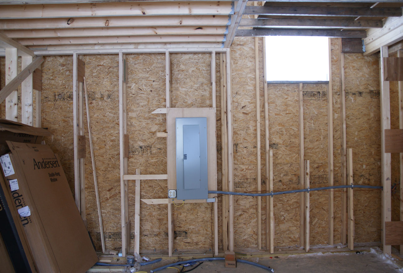 In the last week we have made more good progress. We have begun installing windows. I have been working on the second floor double walls. Rob, our electrician came out today to install the meter socket, electrical panel, and weather head.