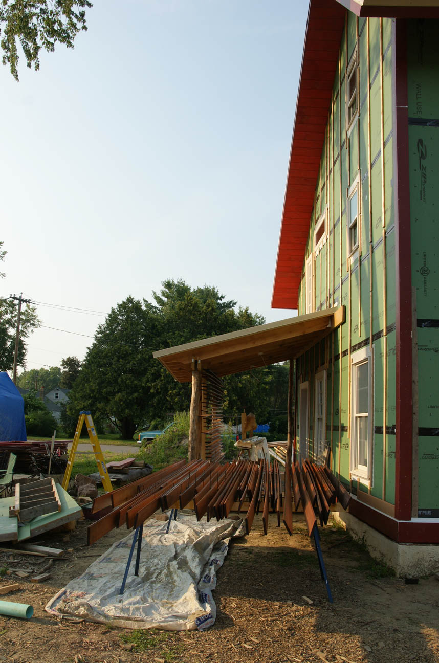 Hannah’s uncle Andy came to help on July 20th, which was perfect timing because we needed another pair of hands to began the siding process. A big thank you to Andy for helping!  The first order of business was to retrieve the siding from the barn that we had it stored in since last summer (link to post about retrieving the siding). We rented our neighbor’s 21′ trailer for the task (thank you Greg).