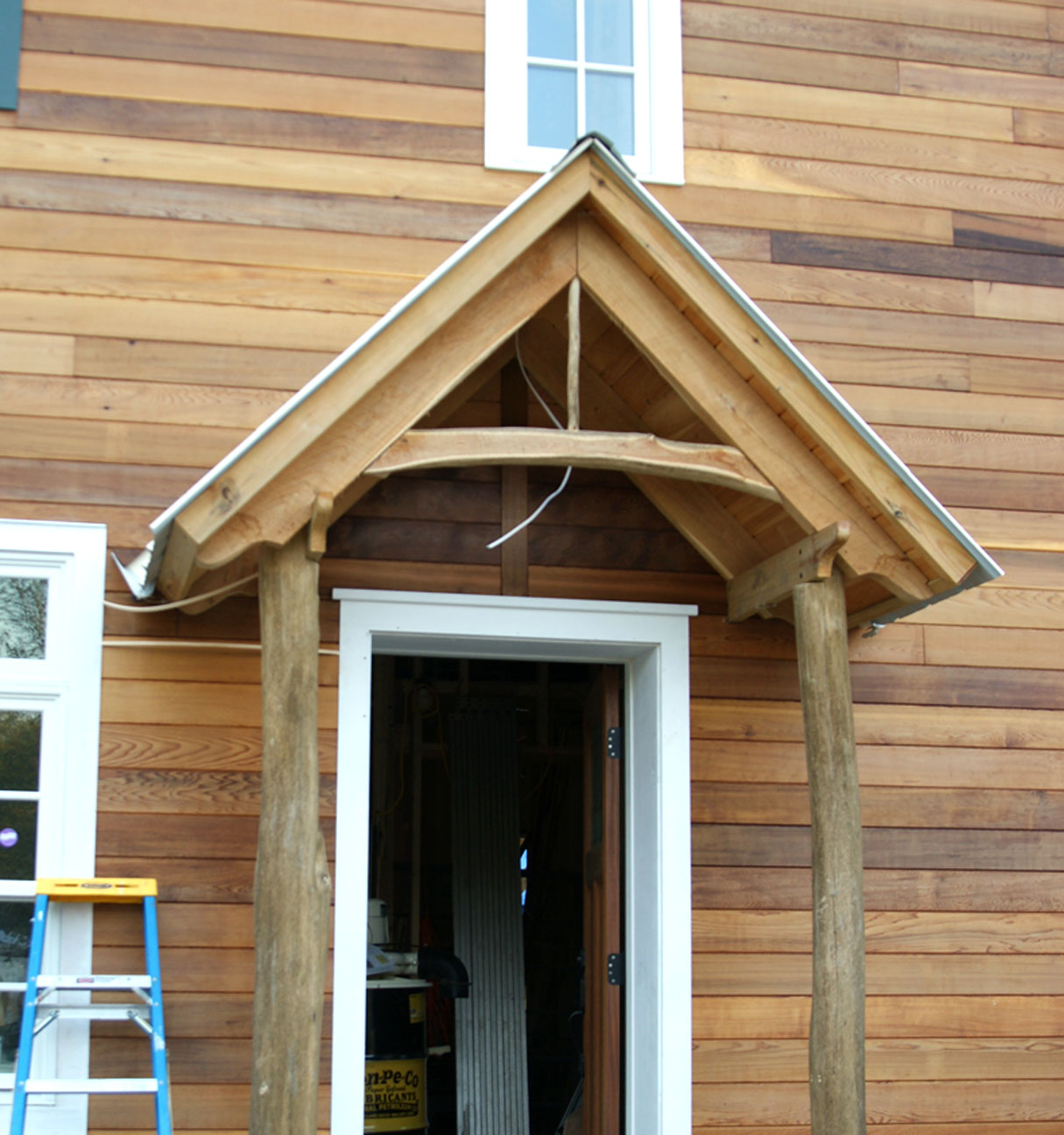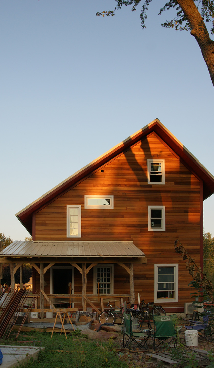 Siding done 9-13-11 Posted on October 9, 2011 by spartannah We finished the siding a month ago: Detail work above entry way mirrors the black locust truss Sunset light on west face of house Share this: Click to share on Facebook (Opens in new window) Facebook Click to share on X (Opens in new window) X Like Loading... Related