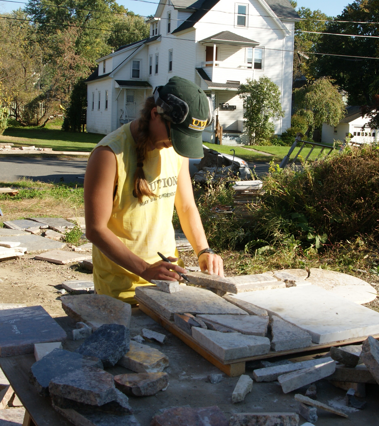 James and Lilly designing 2 foot square segments for the granite counter-top scrap floor
