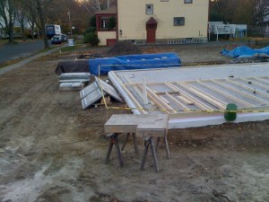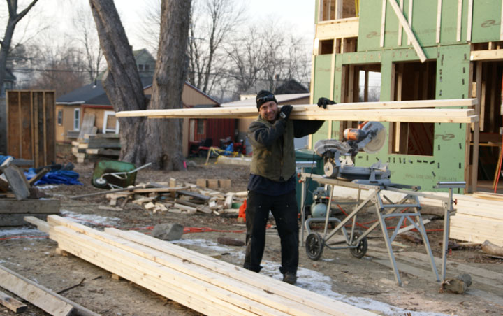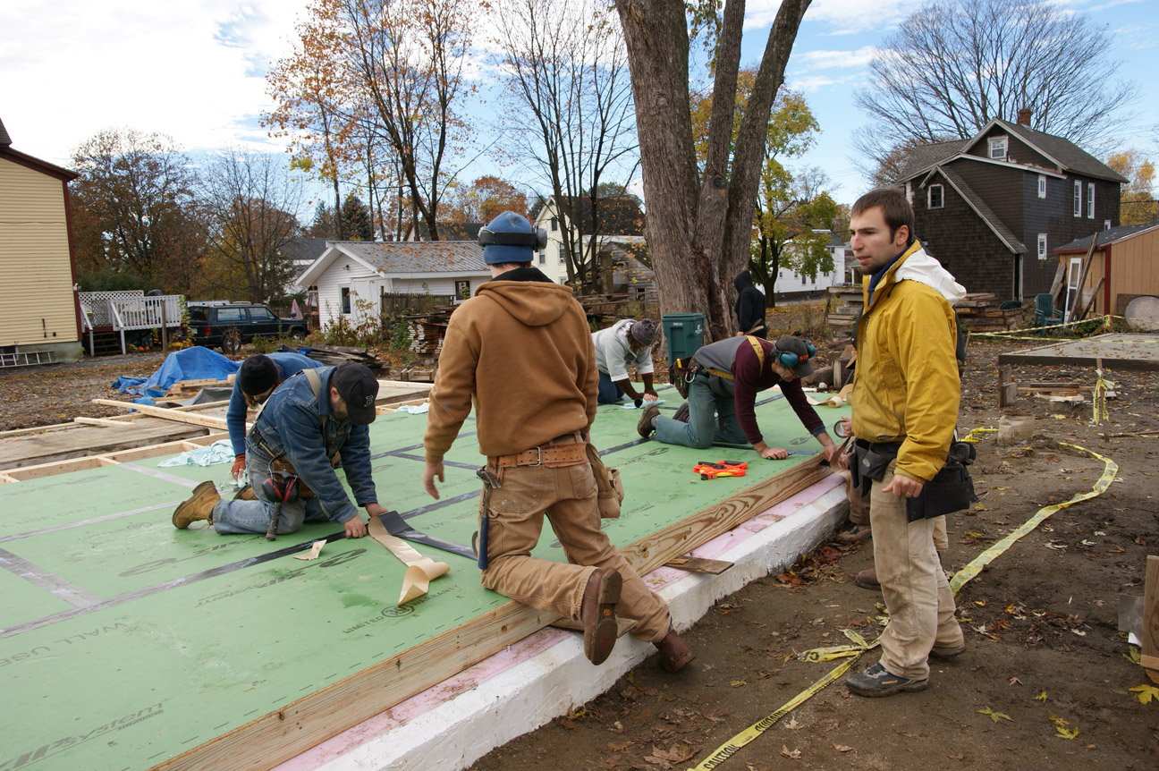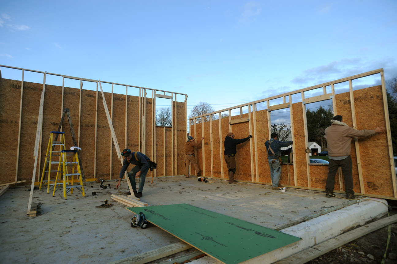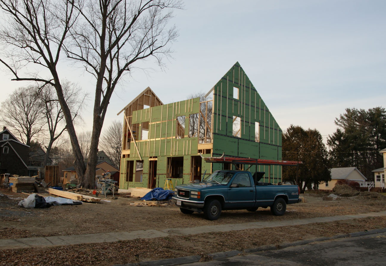 Hooray! Yesterday we had another very successful work party. With many hands on deck we raised the east gable wall, built the South 2nd floor wall, raised it, applied sheathing Zip tape to the areas between the floors, as well as finished a number of other jobs. Thank you to all who turned out: Eric, Craig, Brett, Whip, John, Gary, Darryl, Jason, and Terry. A special thanks to Adam, for leading us safely through the exterior wall raising process.