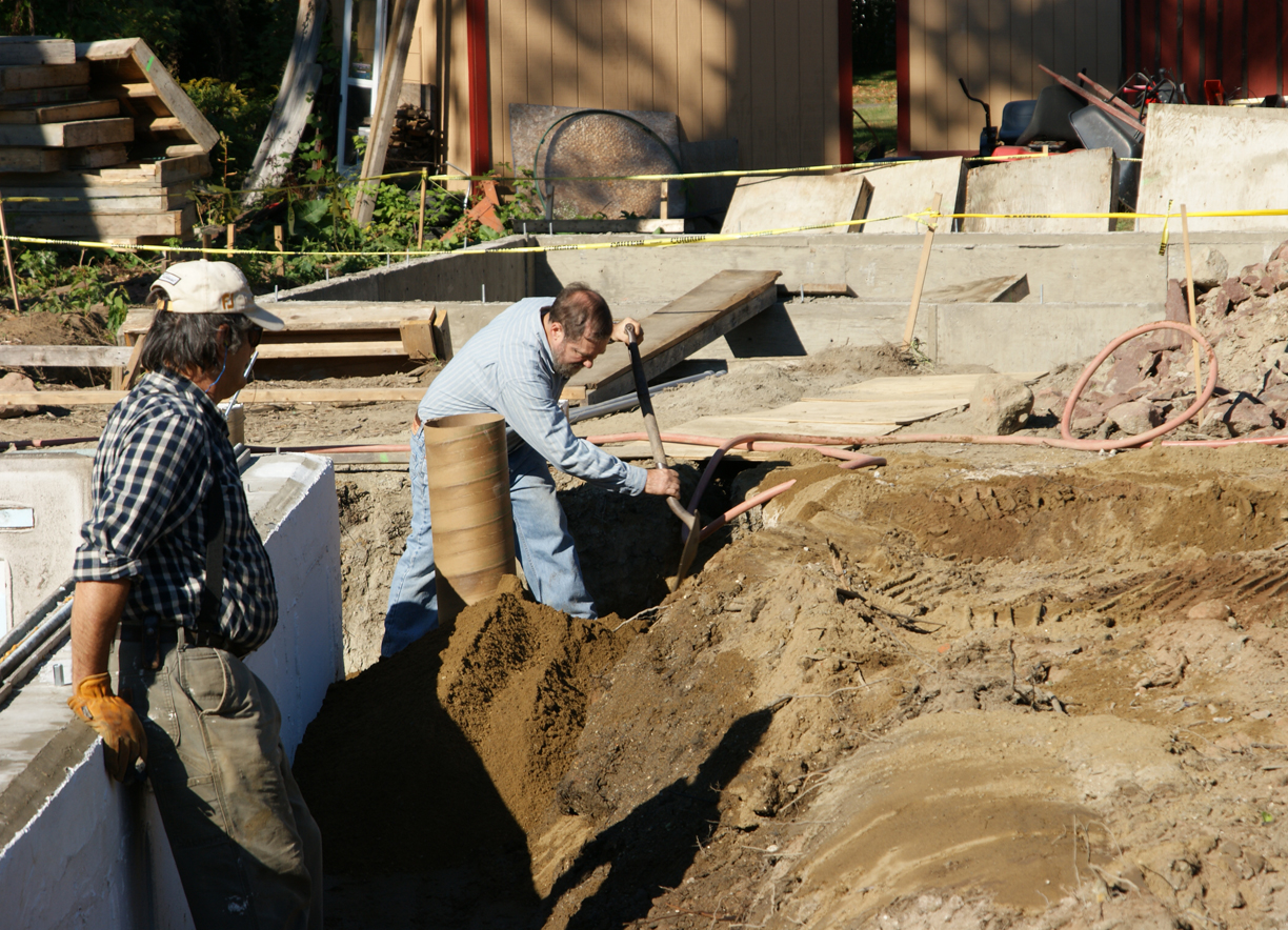 After the pour we strip the forms and we will finally be ready to back fill–which means no more ugly piles of dirt sitting on the property! After the back filling we pour the slabs. Since I now have an appreciation for how difficult it is to level concrete I figured I would hire out the slab finishing. So far, I have a quote for $900 labor to finish the garage and house slab.