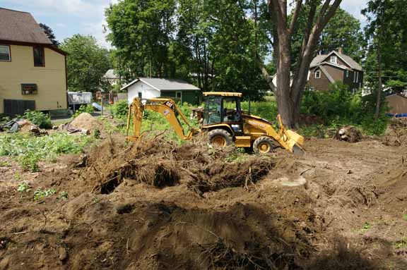 Old clay sewer pipe. We had trouble locating this pipe--partly because we thought we were looking for PVC not VC (Vitrified clay). The folks from the DPW, who you would think have seen it all, were very surprised by the size of the clay pipe as well as the fact that it was connected to unknown pipes.
